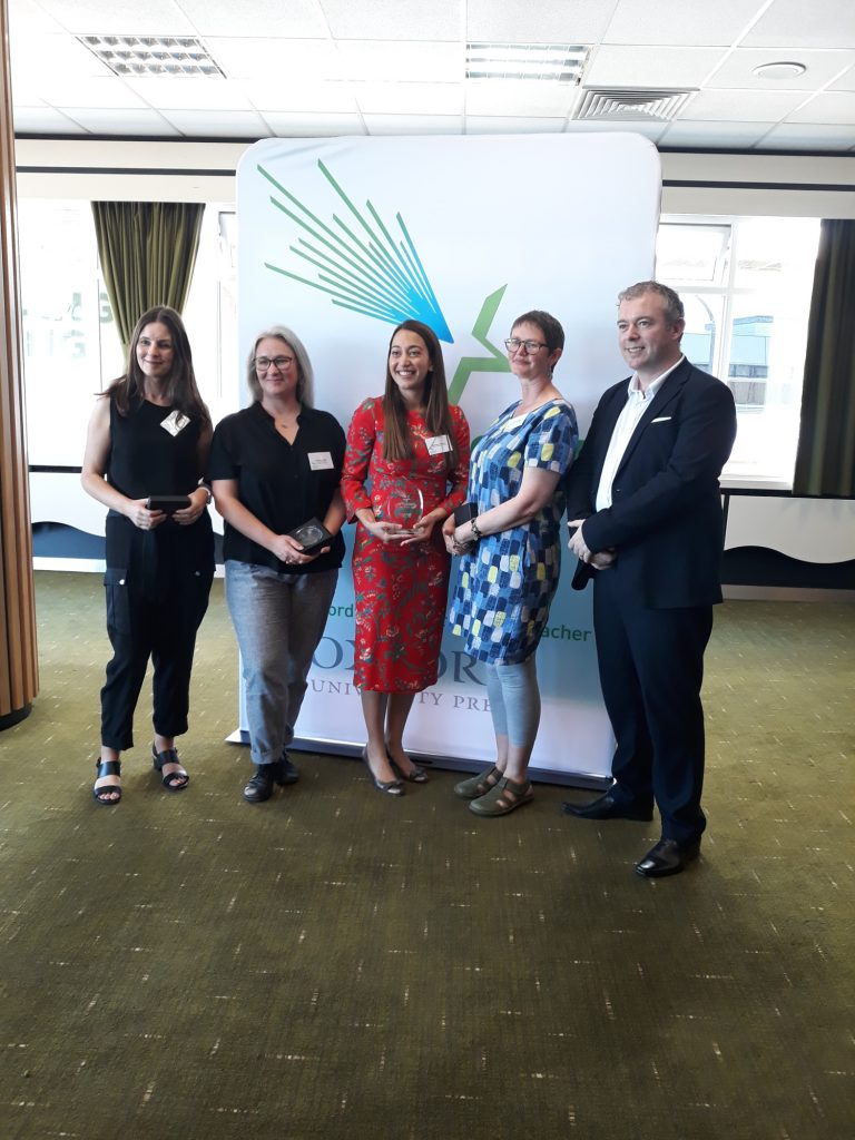 Sabrina with her Law Teacher of the Year Award (in centre) surrounded by the other shortlisted candidates (L-R Jane, Victoria, Lucy & Neil)