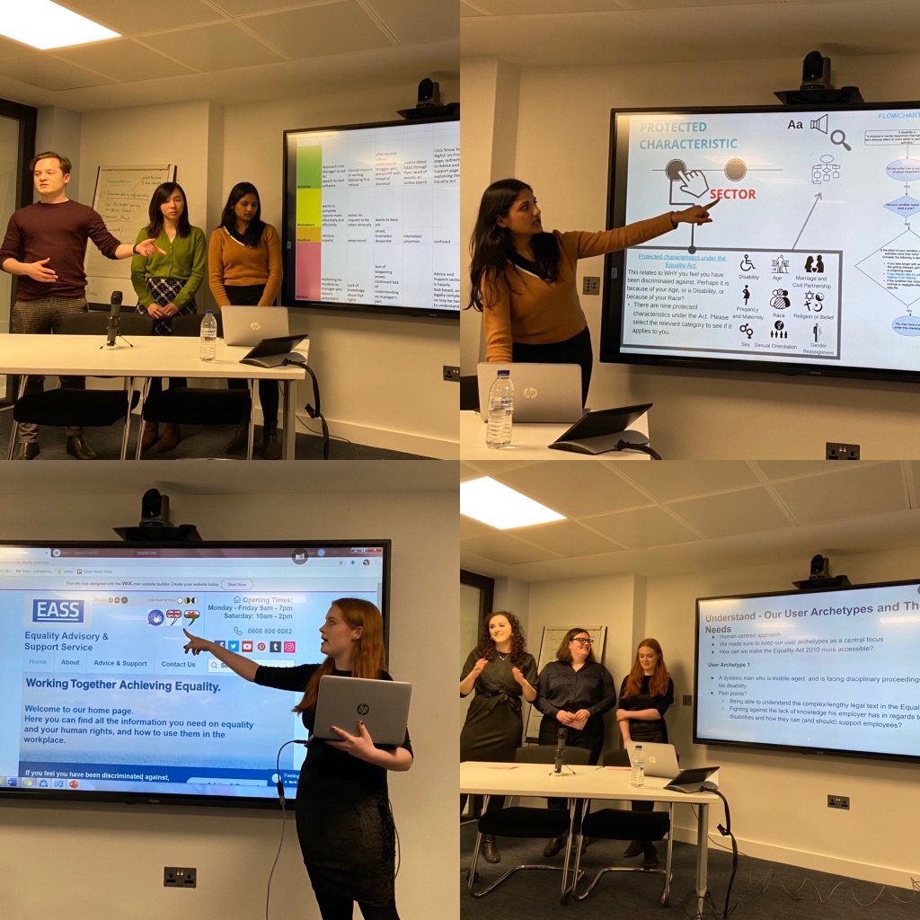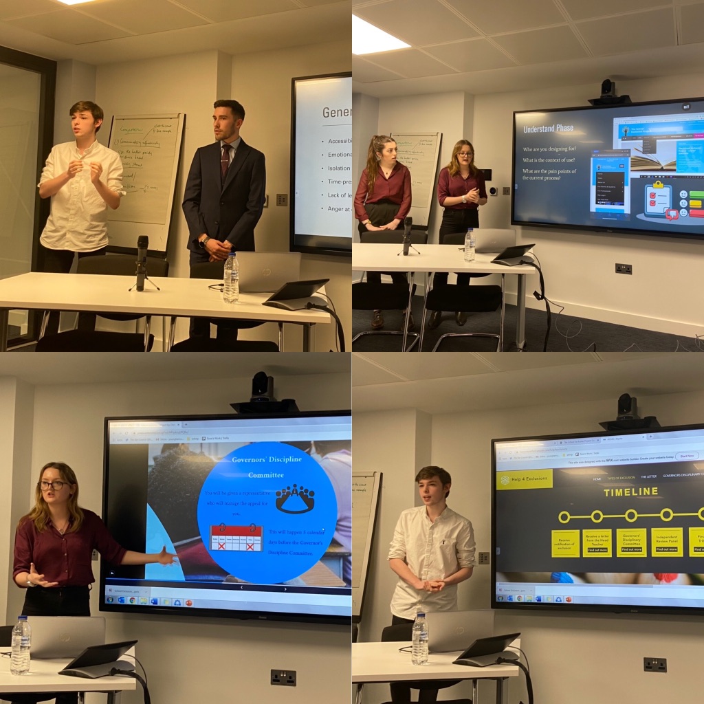 Whilst it is great experience for the students – who in this situation have learned so much over the course of four weeks – what we’re missing in the process is of course industry investment (funds and expertise). The organisations we developed ideas for (EASS, PLP, School Exclusions Project, Disability Rights UK, A-Law) are usually time and funding-poor, often powered by volunteers. It would be amazing to be able to complete the circle, and have law firms and legal tech businesses support the students and organisations in making these prototypes become reality.
