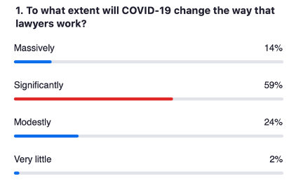 Some of the poll results from “Uncertain decade webinar” by the Legal Geek with Richard Susskind and Mark Cohen