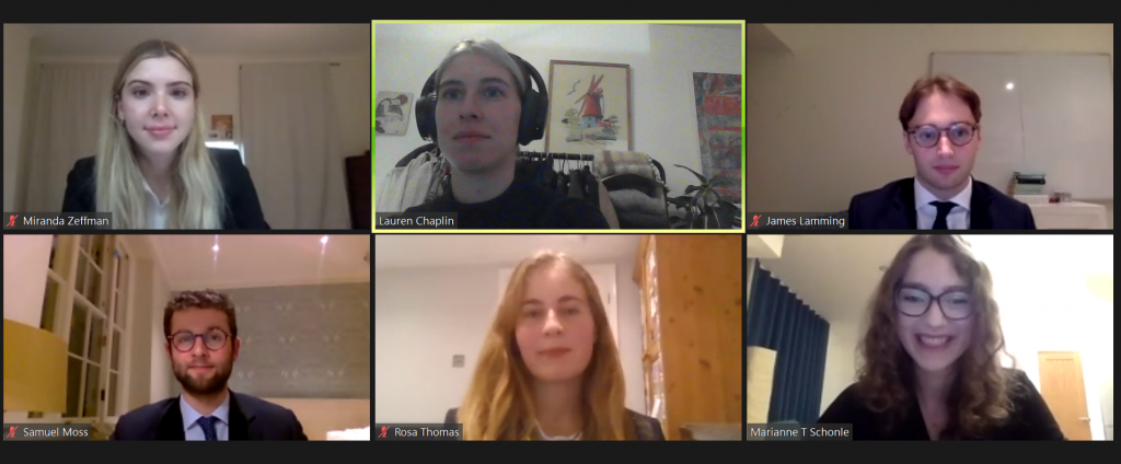 All in all, the experience was fantastic; in addition to the judges (who kindly gave up their first night after Lockdown #2 to adjudicate) I would particularly like to thank Phillip Rule (for setting an excellent moot problem), and Marianne Schonle and Lauren Chaplin (for organising the event and putting up with our many tedious emails).