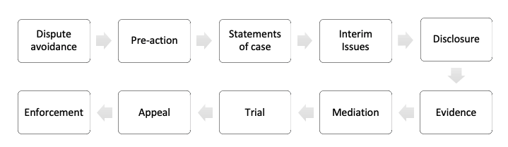 At the disclosure stage, relevant documents will be disclosed and provided to all parties. A “cards on table” approach is used, where everything is disclosed except for the information that holds legal privilege. Evidence can be factual in the form of witness statements or expert evidence where experts provide their opinions. This evidence is exchanged between both parties before the trial starts. Moving on, parties may at times be required to conduct mediation where a third party facilitates negotiations between the parties, and seeking to help them find a mutually acceptable compromise of the dispute.
