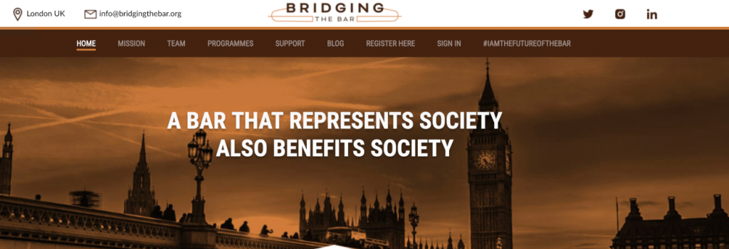 Bridging the Bar (“BTB”) is a charity committed to increasing the equality of access to opportunities in the legal profession across all underrepresented groups. They support aspiring barristers who, owing to their disability, ethnic background, socio-economic background, education or sexuality, belong to groups which are statistically underrepresented in the profession. They also work with organisations at the Bar, including courts and chambers, to facilitate cultural change.