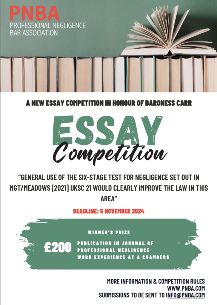 The competition is aimed at law students who have not yet secured the next step in their legal careers (for example) a pupillage or training contract and with a view to fostering interest in professional negligence law.