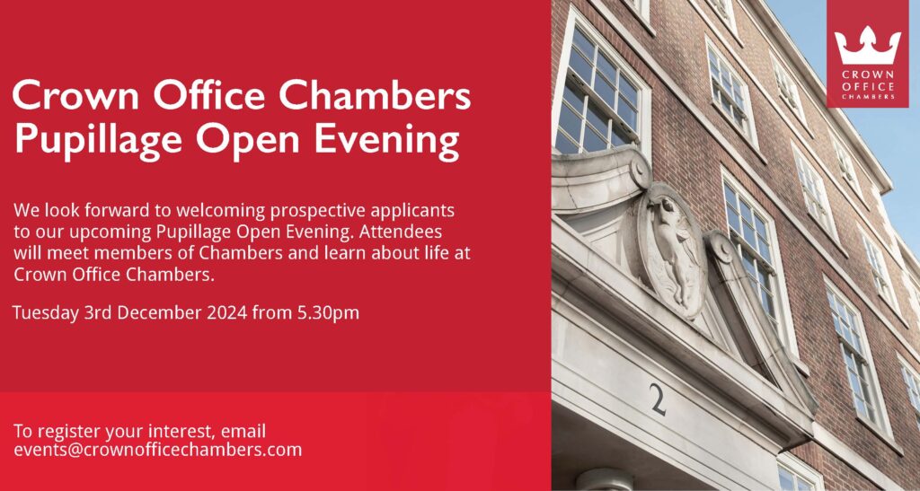 Following the success of their first Pupillage Open Evening in January, Crown Office Chambers will holding another one on Tuesday 3 December 2024.