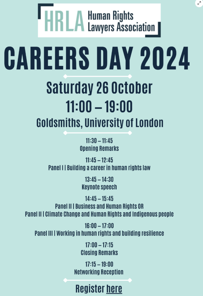 It’s grey, it’s Saturday, it’s taken me an hour to get here. So I am surprised by my waggy-tailed enthusiasm on discovering the locked gates of Goldsmiths College as I attempt to access the Human Rights Lawyers Association (HRLA) Careers Day. Channelling my puppy dog energy, I sniff out an alternative route through a church yard and onto campus, arriving perfectly (if also a little sweatily) on time.