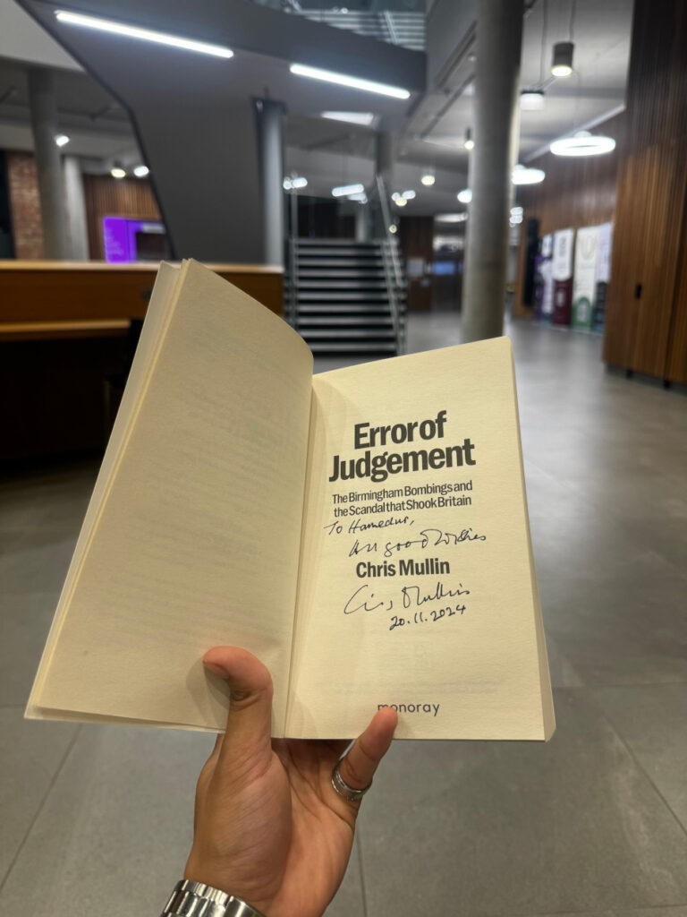 Towards the end of last year Hamedur Rahman attended an event at City, St George’s which was much anticipated: hearing from Chris Mullin during the 50th anniversary of the tragic Birmingham pub bombings. During the event, he shared insights into his groundbreaking investigation, including how he uncovered fresh evidence that ultimately contributed to the acquittal of the Birmingham Six. Mullin also revealed his encounters with individuals he claims were directly involved in the bombings and discussed the far-reaching implications of the case for the British justice system.