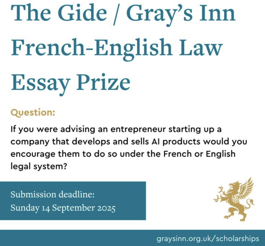 The Gide and Gray’s Inn French English Law Essay Prize is open to all individuals who have been in full-time legal education for no more than six years and were in education during academic year 2024/2025. You do not need to be a member of Gray’s Inn.