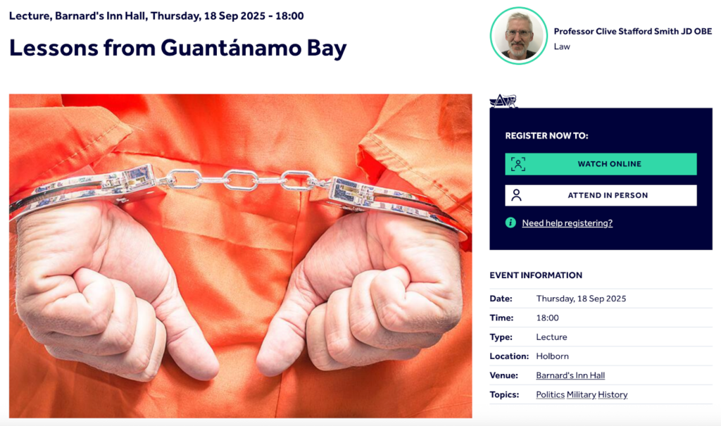 City students! There are a few in-person tickets reserved for you for Professor Clive Stafford Smith’s first lecture at Gresham College this year, on Lessons from Guantanamo Bay, as part of his lecture series on Responding to Illiberal Populism in the US and the UK. Those attending on the 18th September will also get the chance to meet the speaker in person around 4:30pm, before the lecture begins at 5:30pm. Gresham College is not far from City, just off Chancery Lane tube station.
