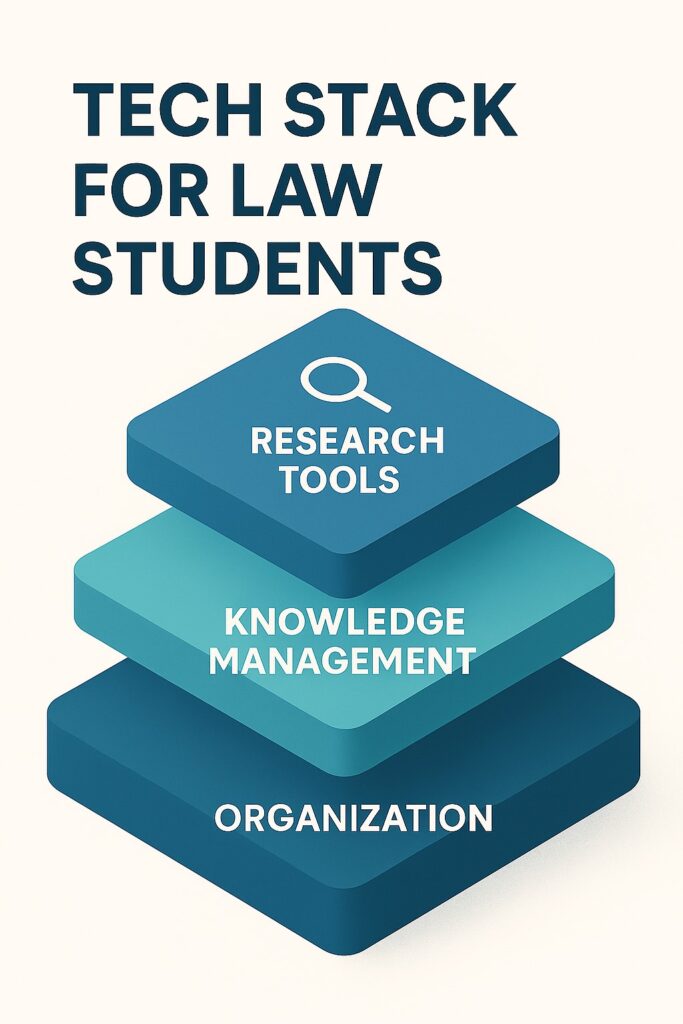 In simple terms, a tech stack is a collection of digital tools that work together to accomplish specific goals. While the term originated in software development, it’s equally relevant to your learning as it is to legal practice (Law Society, ‘Utilising tech to drive efficiency’).