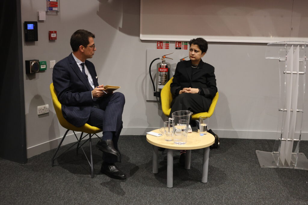 Baroness Chakrabarti being interviewed by Professor Dimitrios Giannoulopoulos